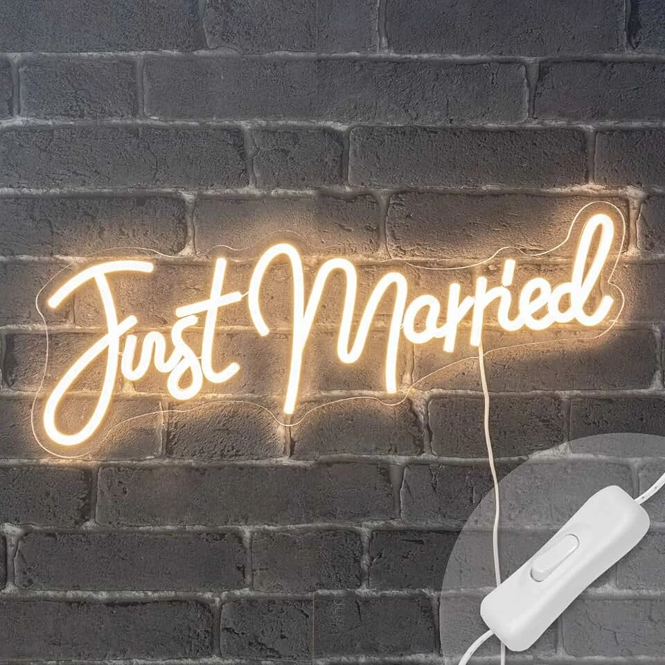 L’inscription « Just Married » est fièrement affichée sur le devant dans une typographie élégante et moderne, faisant de ce t-shirt un choix parfait pour les photos de mariage décontractées ou comme un doux rappel du jour spécial.