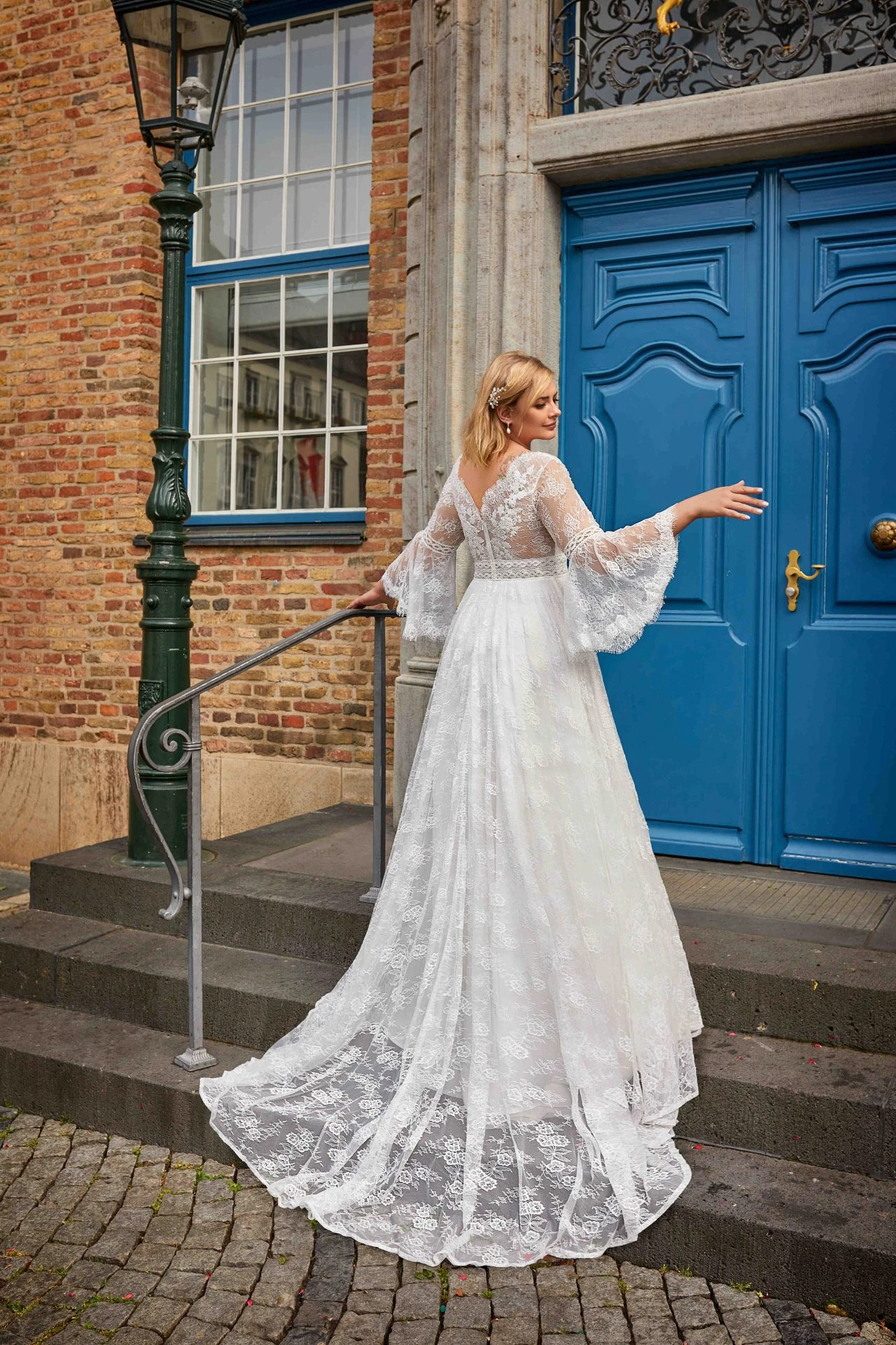 Toutes nos robes de mariée bohème pour femmes rondes sont conçues avec une attention particulière aux détails. Chaque robe est coupée pour flatter et célébrer les formes généreuses, tout en offrant un confort maximal. Les tissus utilisés sont doux et fluides, permettant une liberté de mouvement et un confort inégalés. Les détails tels que les manches évasées, les décolletés plongeants et les jupes amples ajoutent une touche de sophistication et d’élégance.