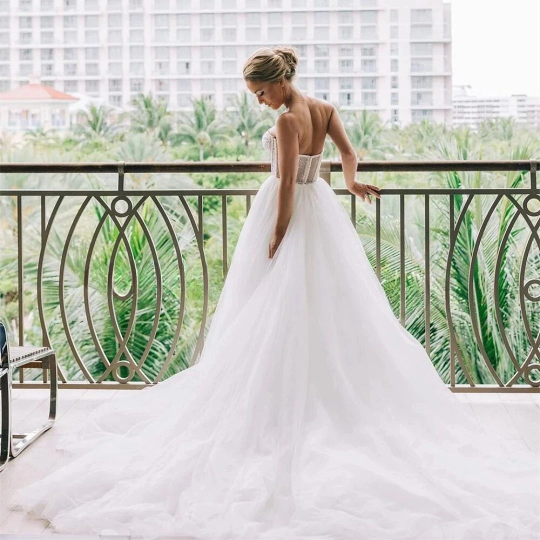 - Avantage : Robe De Mariée Fourreau Brillante A Traîne Détachable En Tulle bustier, traîne, sequins, perles