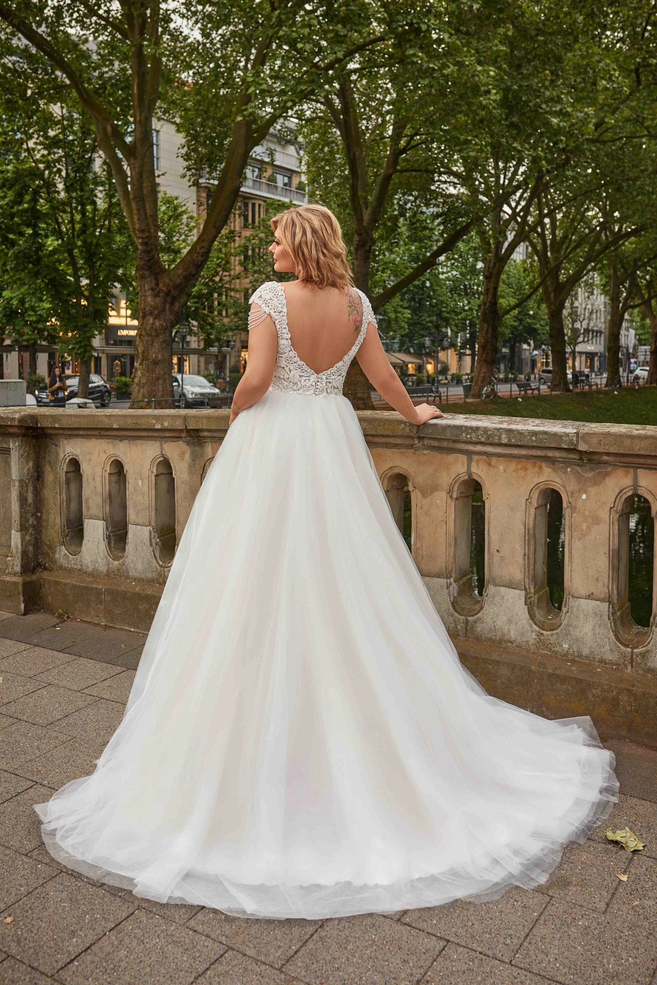 Que vous préfériez un style romantique et délicat, ou un look audacieux et glamour, vous trouverez une robe de mariée grande taille dos nu qui correspond à vos goûts. Les options sont infinies – de la dentelle délicate aux paillettes scintillantes, du drapé fluide à la structure architecturale. Avec un large choix de tissus, de coupes et de silhouettes, il y a une robe de mariée dos nu pour chaque mariée curvy.