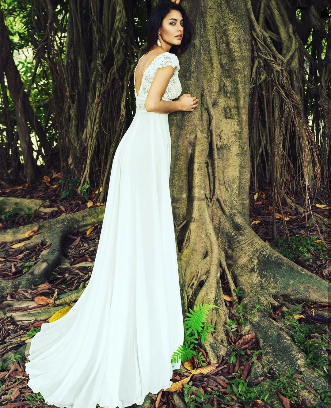 - Avantage : Robe De Mariée Rétro Dentelle manches courtes, dentelle florale, col V, traîne, liseré