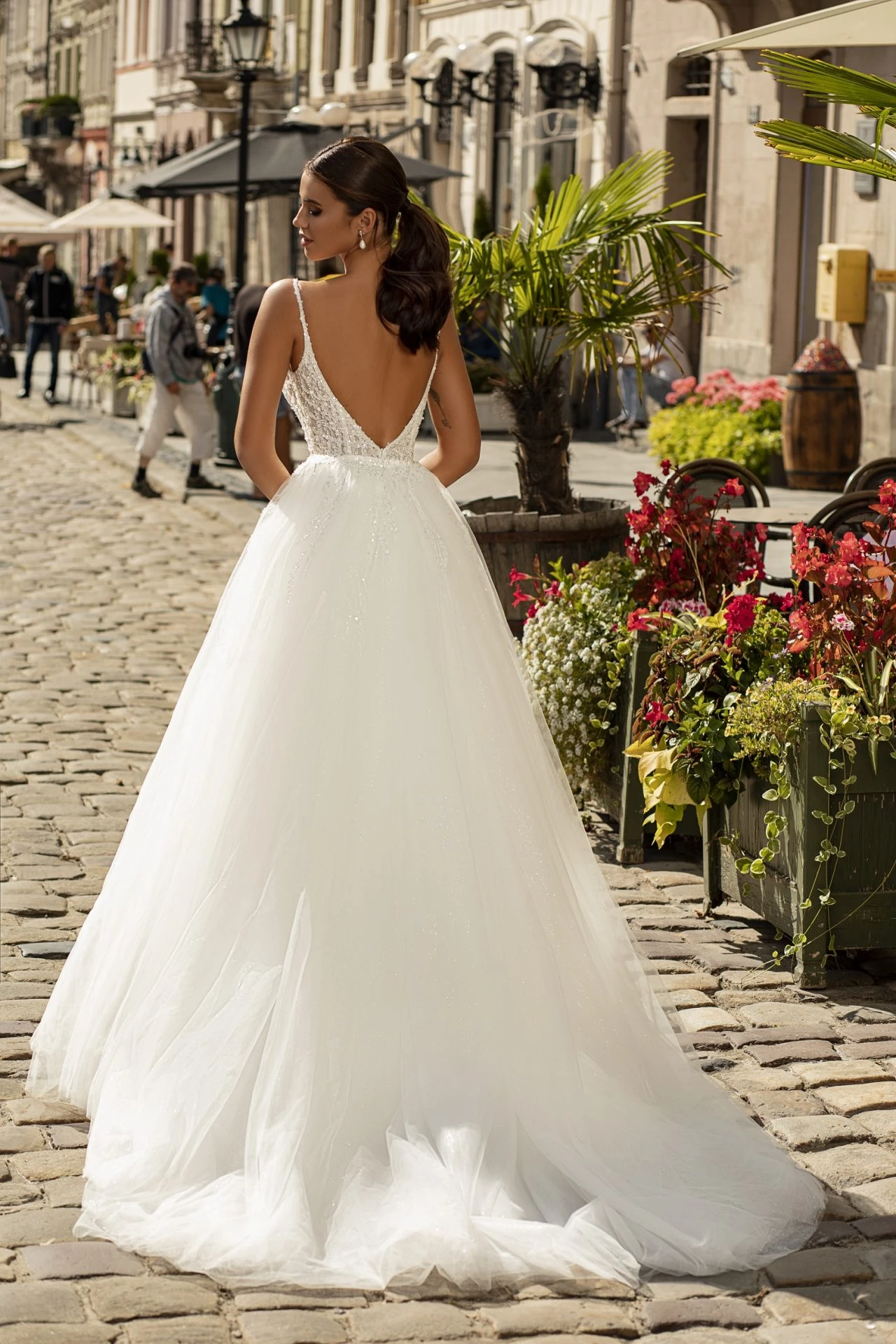 - Avantage : Robe De Mariée Sirène Dos Nu Sexy Blanche col V, traîne, sur-jupe, sequins, perles, fines bretelles