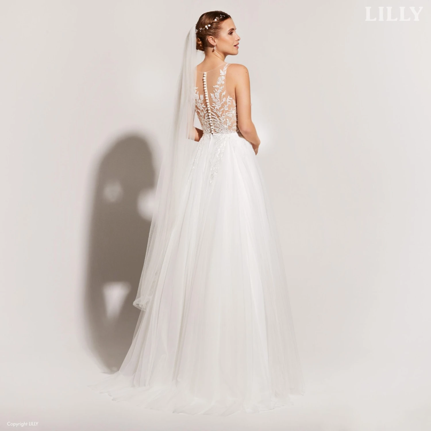 La transparence de la robe est subtilement dosée pour mettre en valeur votre beauté naturelle sans être trop osée. Que vous optiez pour un look classique ou moderne, cette robe sera la pièce maîtresse de votre mariage. C’est le choix parfait pour les mariées qui veulent se démarquer et faire une déclaration de mode audacieuse.