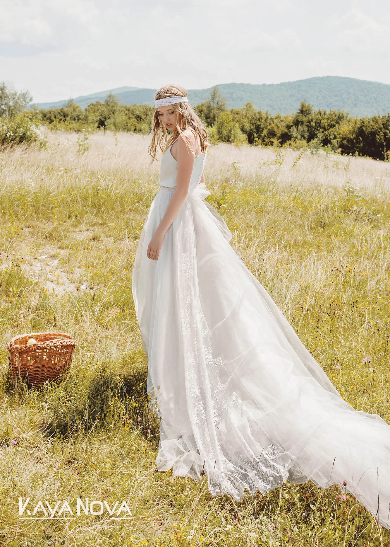 La robe de mariée tulle et dentelle blanche combine les éléments classiques de l’élégance et du style. La dentelle délicate et détaillée ajoute une touche de sophistication, tandis que le tulle donne à la robe un aspect aérien et romantique. Ce mariage de textures créé une robe à la fois moderne et intemporelle, parfaite pour le plus beau jour de votre vie.