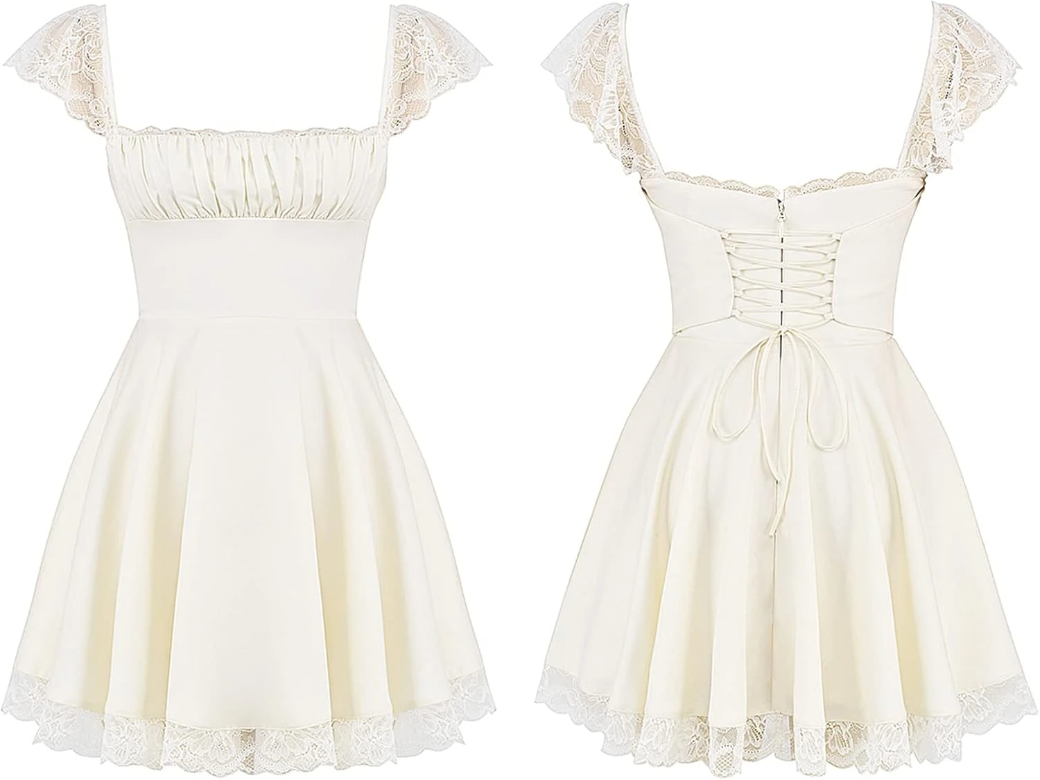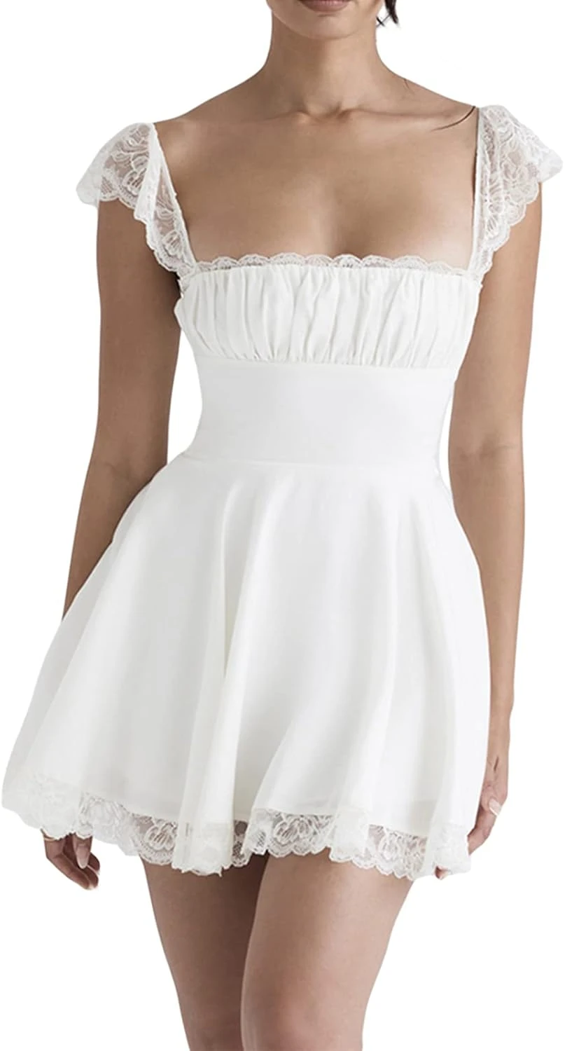 Découvrez cette Loalirando Mini Robe Sexy Femme Robe Courte Élégante en Dentelle Blanche Femmes Robe Élégante Sans Manches Moulante Sexy Femme avec Col Carré Robe D’Été Vintage Fête au prix imbattable de : 30,92€