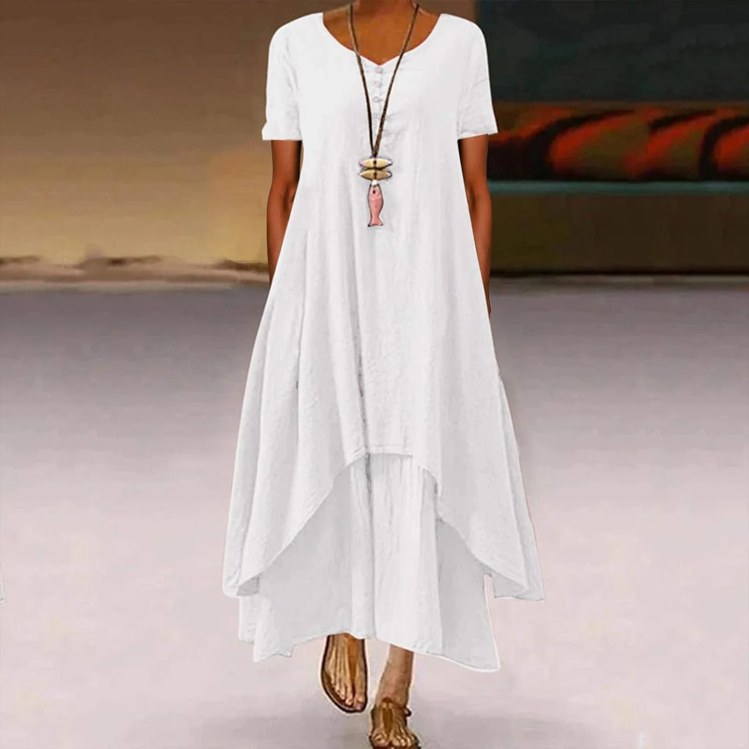 L’été est là, et avec lui, le besoin de robes légères et respirantes pour séjourner sous le soleil chaud. Dans cet article, nous allons vous présenter une robe idéale pour l’été : la longue robe blanche col en V pas cher grande taille robe rétro maxi robe lâche imprimé florales bohemien sans manches été mi-longue dress cotton en ligne décontracté pour fêter robes tunique. Une robe qui combine confort, style et facilité d’ensemble.