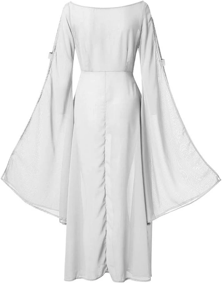 Les robes longues blanches ont une longue histoire remontant aux premières célébrations de l’Halloween en Irlande et en Écosse. Les sorcières et les sorciers portaient souvent des robes blanches pour les pratiques magiques et la possession. Cependant, après l’influence du christianisme, le Blanc est devenu synonyme de pureté et de bonnes actions. La robe longue blanche est devenue donc un symbole de protection et de défense contre les forces obscures.
