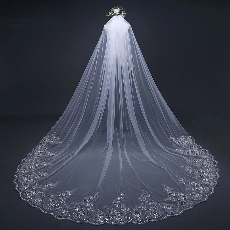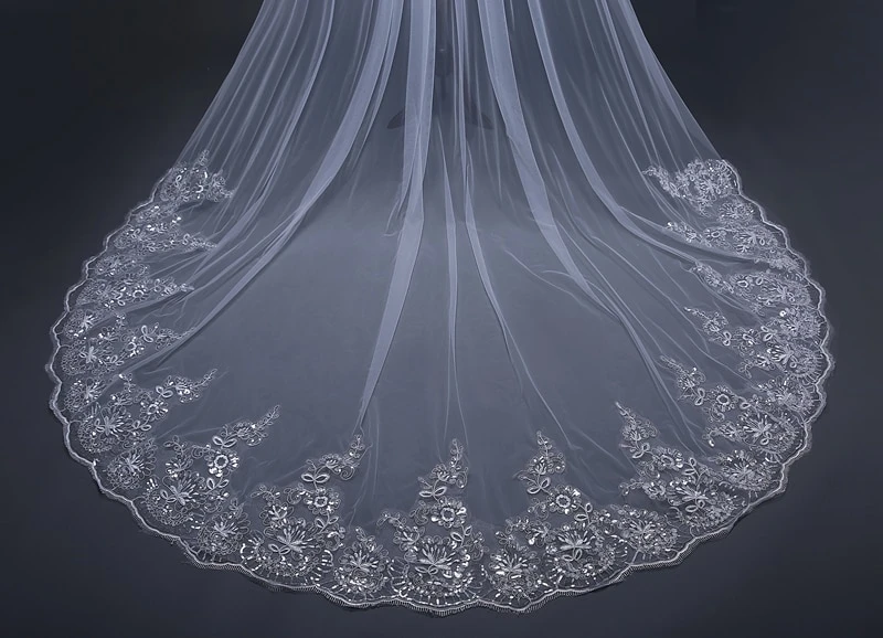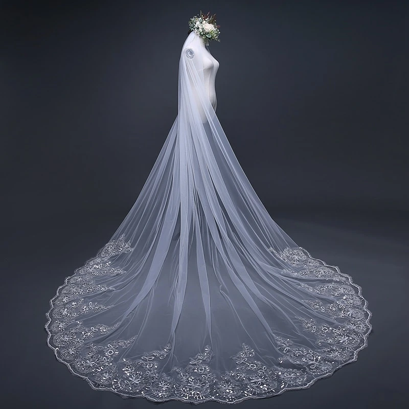 - Avantage : Voile De Mariée Blanc liseré, dentelle florale, peigne