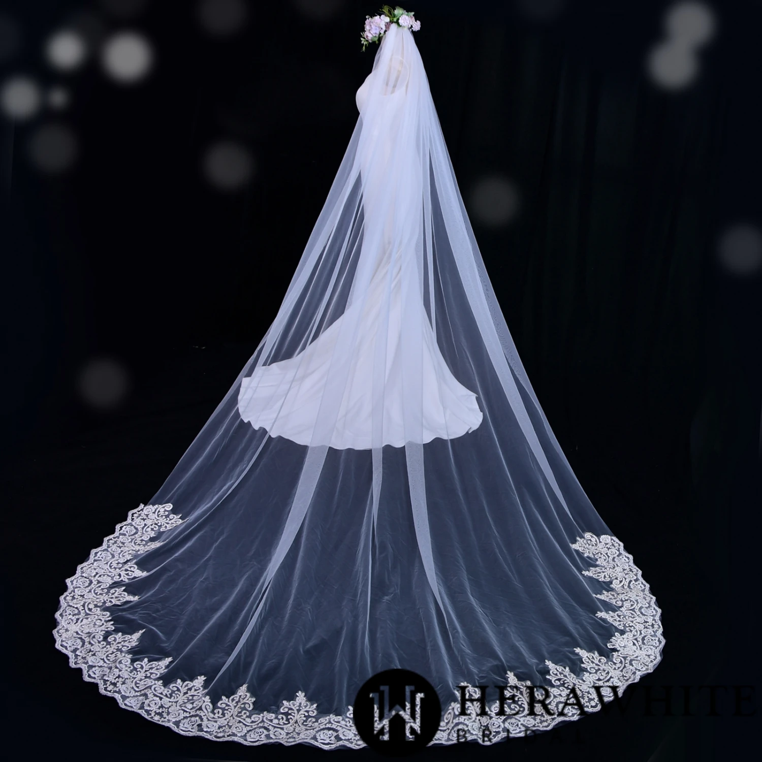 - Avantage : Voile de Mariée Long Avec Peigne dentelle, liseré, ivoire